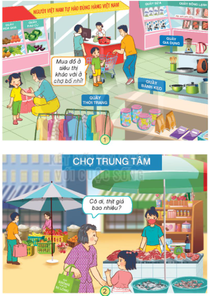 Khám phá trang 44 bài 11 Tự nhiên và xã hội lớp 2 Kết nối tri thức: Hoạt động mua bán hàng hóa thường diễn ra ở đâu?