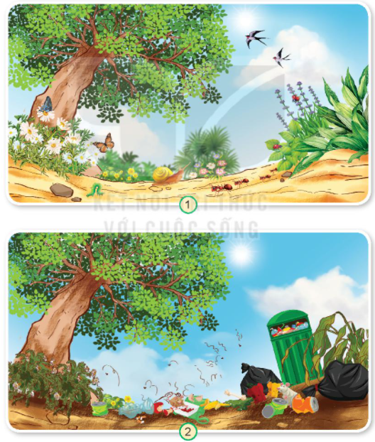 – Hai bức tranh có sự khác nhau do con người xả rác ra môi trường.