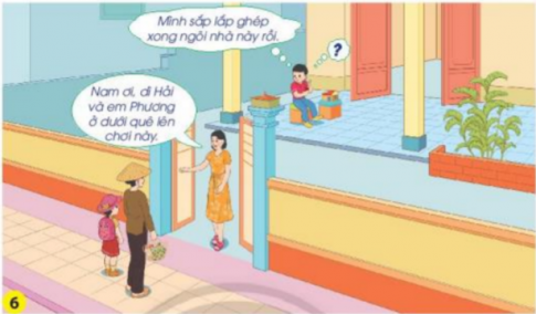 Nếu là em em sẽ dừng việc lắp ghép lại và ra đón dì Hải và em Phương vào nhà chơi. Em sẽ rót nước mời dì và em uống và trò chuyện cùng dì và em.