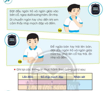 Kiến thức và kỹ năng trang 93 bài 21 Tự nhiên và xã hội lớp 3 Chân trời sáng tạo: đếm nhịp mạch đập trong một phút