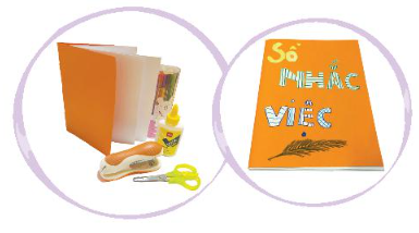 Làm “Sổ nhắc việc”, Làm cuốn “Sổ nhắc việc” bằng giấy bìa, keo dán, dập ghim, . . . Trang trí sổ và ghi tên em.