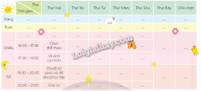 1. Lập thời gian biểu các công việc của em trong một tuần