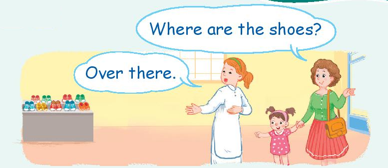 A: Where are the shoes? (Đôi giày ở đâu?)