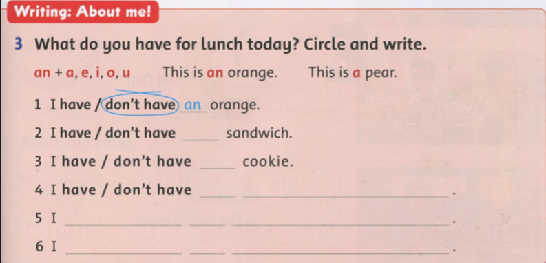 I have sandwich and a banana. But I don’t have orange.