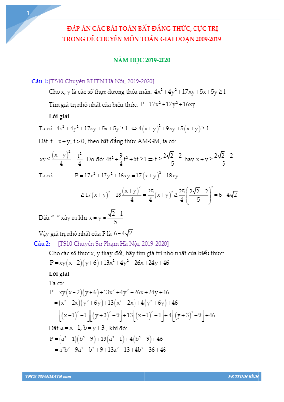Bài toán bất đẳng thức và cực trị luôn là những thách thức lớn đối với học sinh khi tham gia vào kì thi tuyển sinh vào lớp 10 môn Toán. Đây là phần bài thi mang tính quyết định, giúp trường chọn lọc những học sinh giỏi và xuất sắc nhất để vào học tại các lớp chuyên Toán tại các trường THPT chuyên.