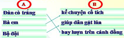 Câu 2.  Ghép các từ ngữ ở cột A với các từ ngữ ở cột B để tạo thành câu kể Ai làm gì?