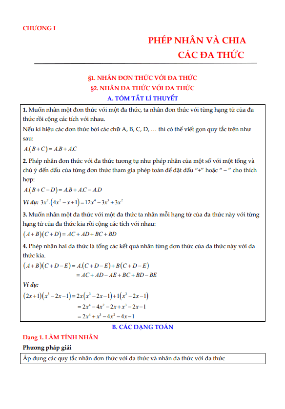 Bạn đang muốn tham khảo tài liệu học toán lớp 8, đặc biệt là phần Đại số chương 1 với các bài tập về phép nhân và phép chia đa thức? Đúng chỗ rồi đấy! Bộ tài liệu này bao gồm 59 trang, tóm tắt lý thuyết cơ bản về đa thức, các dạng toán phổ biến và bài tập thực hành giúp bạn nắm vững kiến thức.