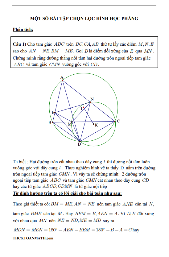 Một số bài tập chọn lọc hình học phẳng ôn thi vào lớp 10 môn Toán