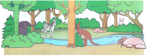 Các con vật : trâu rừng, trăn, chồn, chuột túi