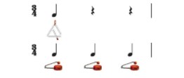 Nhạc cụ trang 44 Âm nhạc 2 – Chân trời sáng tạo: Tiết tấu và luyện tập gõ trai-en-gô, song loan : tiết tấu và gõ