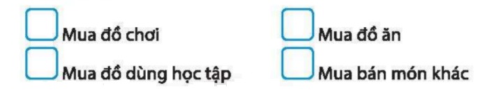 Đánh dấu X vào □ trước các việc em đã sử dụng tiền để mua bán.