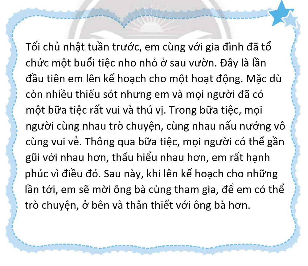 Viết về một hoạt động chung mà gia đình em cũng thực hiện theo kế hoạch trong tuần vừa qua.