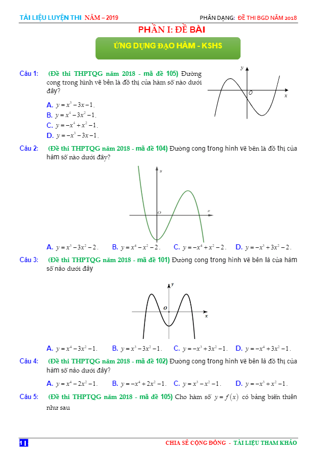 Phân loại câu hỏi đề thi THPTQG 2018 môn Toán theo chủ đề
