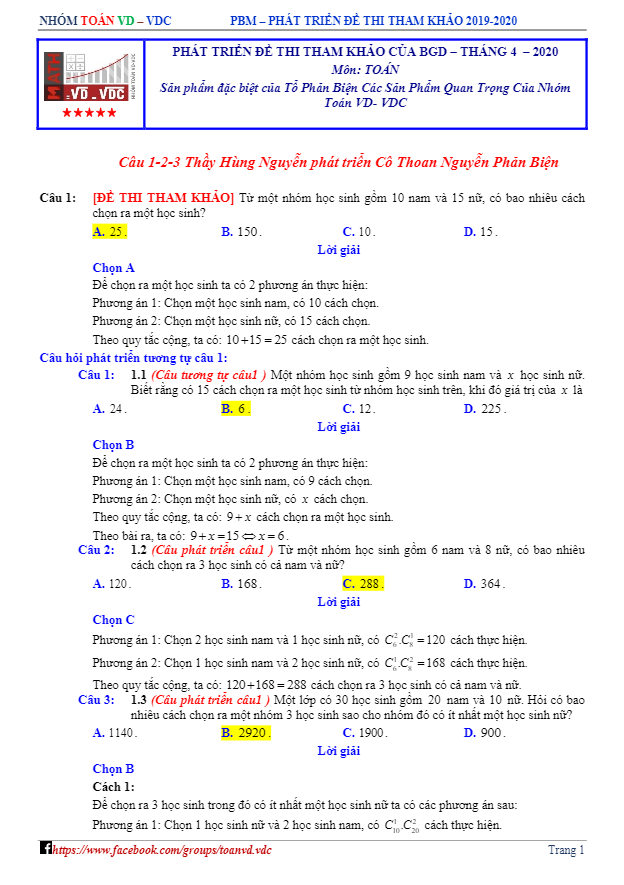 Phát triển đề thi tham khảo THPT Quốc gia 2020 môn Toán: “Dựa trên “