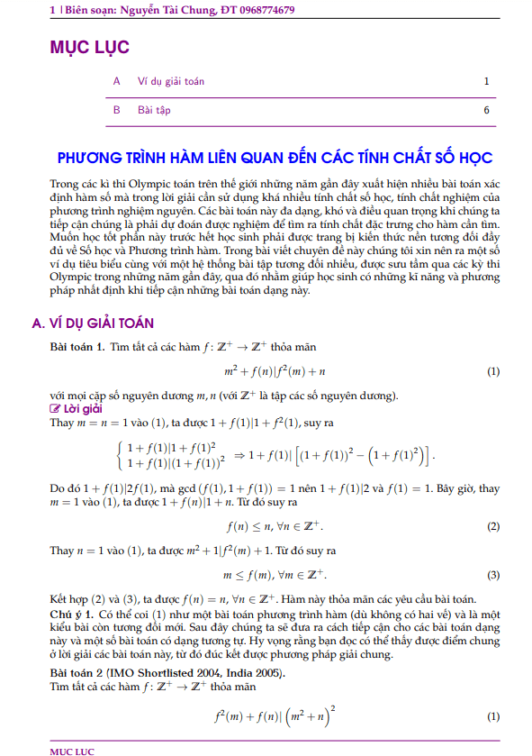 Trong các bài viết chuyên đề, thầy Nguyễn Tài Chung cung cấp ví dụ cụ thể và hệ thống bài tập từ các kỳ thi Olympic gần đây, nhằm giúp học sinh phát triển kỹ năng và phương pháp tiếp cận các bài toán phức tạp này. Làm quen với các bài toán này không chỉ giúp học sinh nắm vững kiến thức mà còn rèn luyện khả năng logic và tư duy toán học.