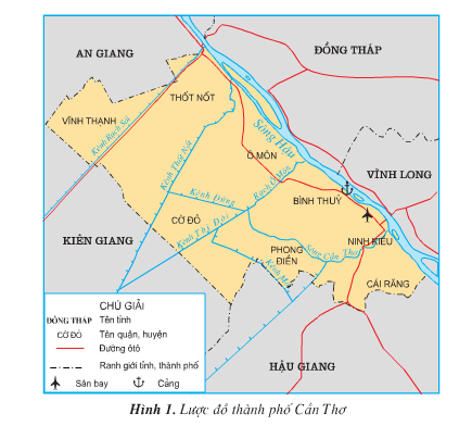 Quan sát hình 1, em hãy cho biết Chỉ vị trí của Thành phố Cần Thơ trên lược đồ và cho biết thành phố tiếp giáp những tỉnh nào ?