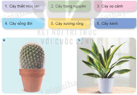 – Gọi tên các loại cây cảnh có trong hình bằng cách sử dụng thẻ gợi ý dưới đây.