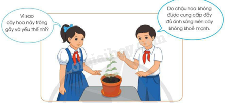 Quan sát hình và thông tin gợi ý dưới đây, em hãy cho biết vì sao cần cung cấp đầy đủ ánh sáng cho hoa.