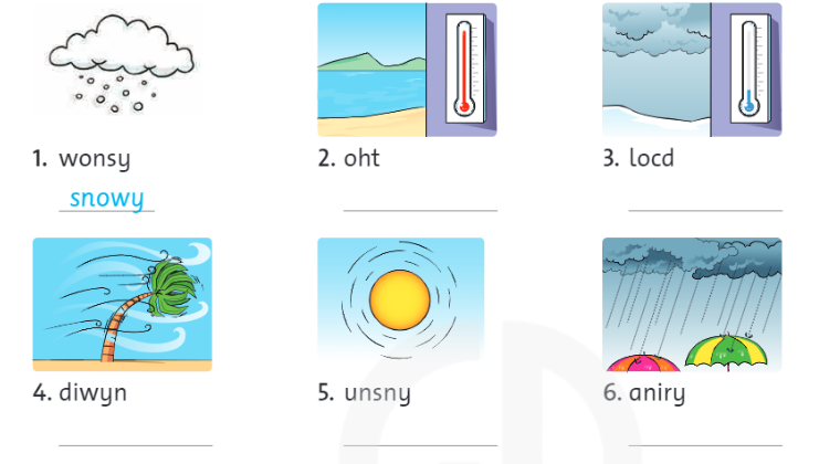 6. rainy (adj): mưa