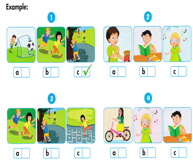 Các bạn còn lại sẽ đoán và nói, ví dụ “Let’s play soccer”(Hãy chơi đá bóng nào), hoặc“Let’s play hopscotch” (Hãy chơi đá bóng nào). Nếu đúng thì nói “Yes”, sai nói “No”.