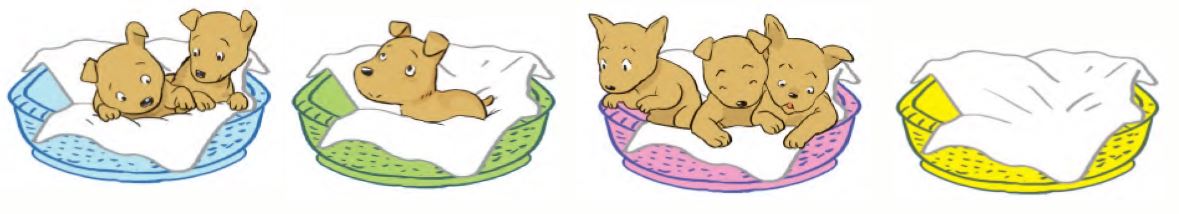 a) Quan sát hình và đếm số con chó trong các rổ.