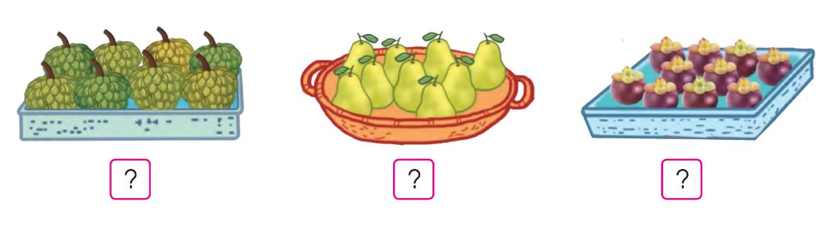 a)Quan sát hình, đếm số quả có trong mỗi giỏ và điền số thích hợp.