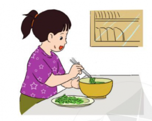 – Bạn nhỏ trong bài nấu một bữa cơm.