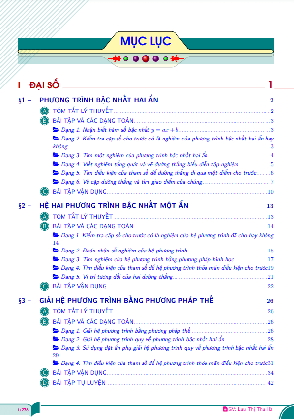 Bộ tài liệu này được tổng hợp bởi cô giáo Lưu Thị Thu Hà, bao gồm lý thuyết, bài tập và các dạng toán môn Toán học cho học sinh lớp 9. Bộ tài liệu có tổng cộng 283 trang, bao gồm đầy đủ đáp án và lời giải chi tiết cho từng bài tập.