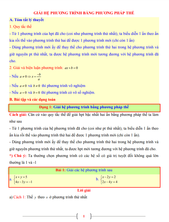 Tài liệu học Toán lớp 9: Giải hệ phương trình bằng phương pháp thế