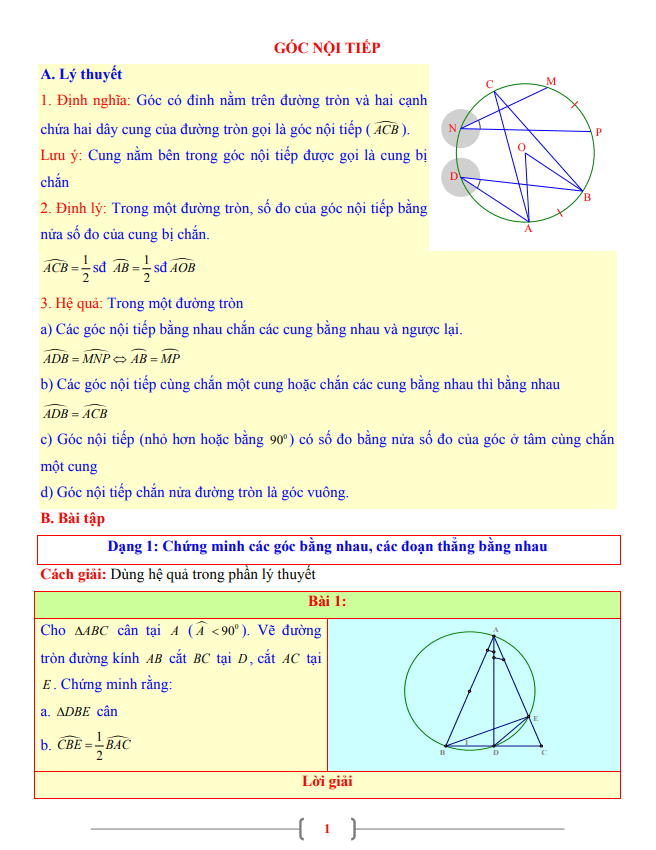 Lý Thuyết Về Góc Nội Tiếp