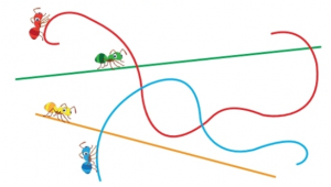 Câu hỏi: Bạn kiến nào bò theo đường thẳng?