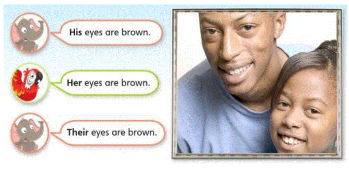 Tiếng Anh lớp 3 Language Focus 1B Unit 7 trang 119 Explore Our World: B75. His eyes are brown. Her eyes are brown. Their eyes are brown. Dịch