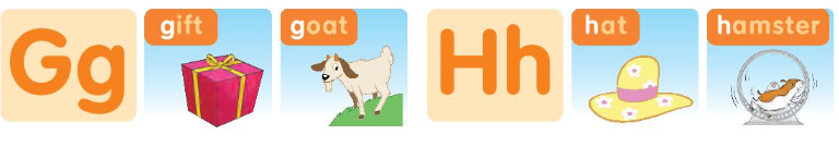 (Chỉ vào và đọc những từ bắt đầu bằng chữ cái g và h.)