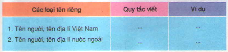 Câu 3. Lập bảng tổng kết quy tắc viết tên riêng theo mẫu sau :