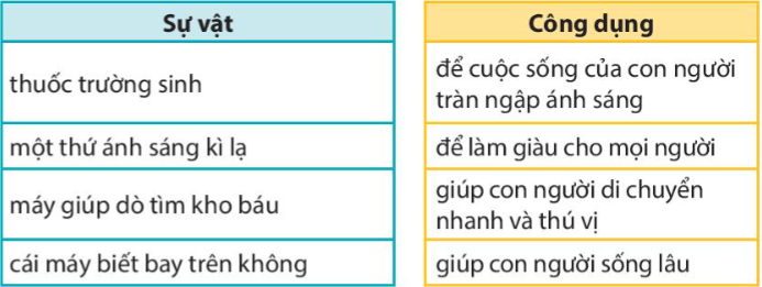 Em hãy tìm công dụng của sự vật tương ứng.