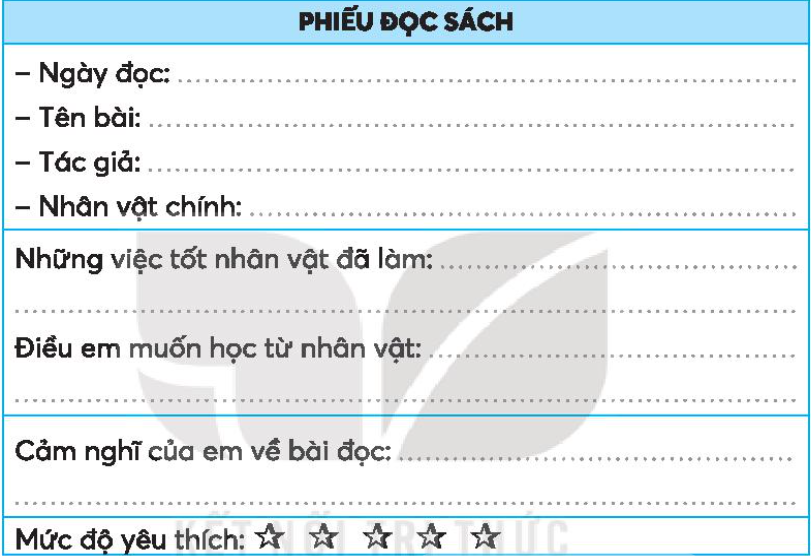 Tìm đọc bài về một nhân vật được mọi người quý mến, cảm phục và viết thông tin vào phiếu đọc sách. Em tìm đọc các bài đọc trong sách