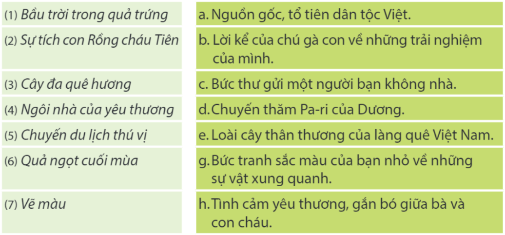 Em dựa vào những kiến thức đã học, suy nghĩ và nối thích hợp.