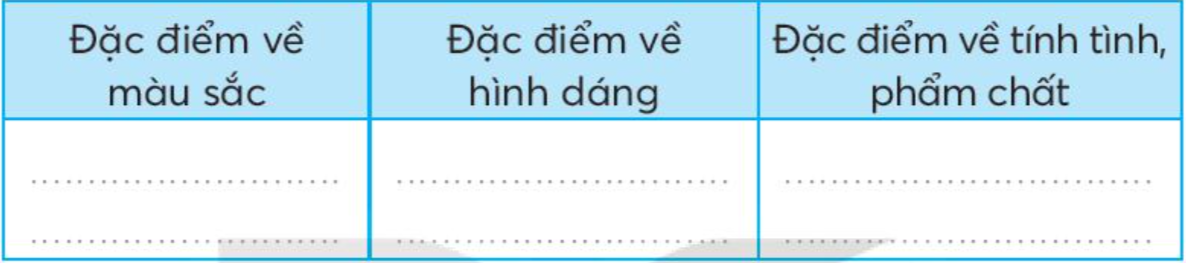 Tìm từ ngữ chỉ đặc điểm trong bài Đàn chim gáy (SHS Tiếng Việt 3, tập hai, trang 136) theo 3 nhóm dưới đây: