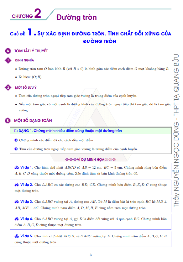 Tóm tắt lý thuyết và một số dạng toán đường tròn Nguyễn Ngọc Dũng