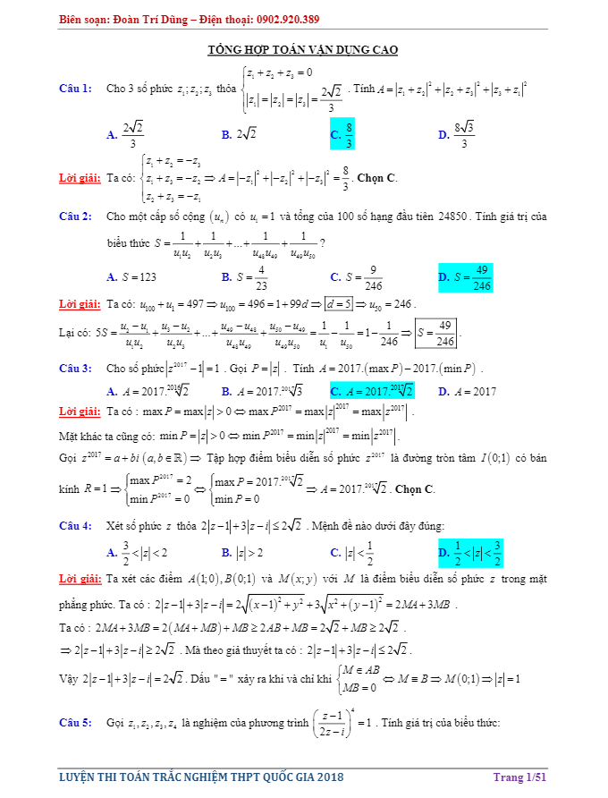 Tổng hợp Toán vận dụng cao có lời giải chi tiết Đoàn Trí Dũng