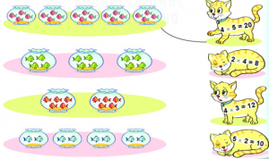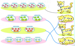 4 + 4 + 4 + 4 + 4 = 20 tương ứng với phép nhân là 4 × 5 = 20 ;