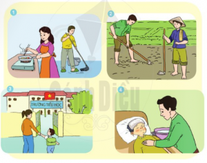 - Tranh 1: Mẹ nấu ăn, bố lau nhà