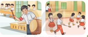 – Tiếng trống trường báo hiệu cho em biết giờ vào học, giờ ra chơi, giờ ra về.