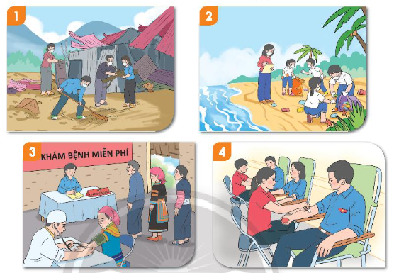 Quan sát tranh, kể tên các hoạt động tình nguyện nhân đạo.