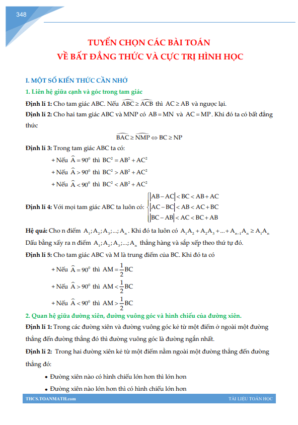 Trước hết, tài liệu bắt đầu bằng việc giới thiệu một số kiến thức căn bản về hình học tam giác và đường tròn, giúp học sinh hiểu rõ hơn về quan hệ giữa các cạnh, góc trong tam giác và một số đặc điểm quan trọng về đường tròn.