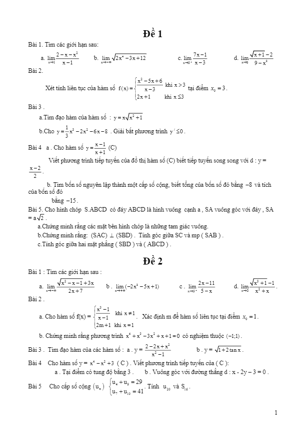Đề HK2 Toán 11