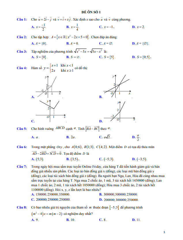 Trong tài liệu này, có nhiều đề ôn thi khác nhau, giúp học sinh rèn luyện và củng cố kiến thức Toán một cách hiệu quả. Ví dụ như trong một số đề, học sinh sẽ được luyện tập về cách giải các bài toán về giá trị đồng giá của các sản phẩm khác nhau. Hoặc các bài toán về phương trình và tam giác.