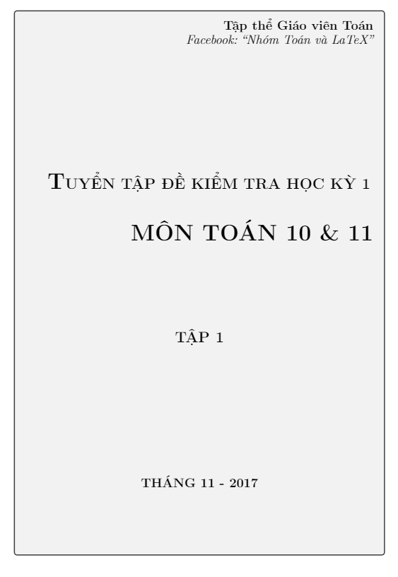 Tuyển tập đề kiểm tra học kỳ I lớp 10 môn Toán và 11 Nhóm Toán và Latex (Tập 1)