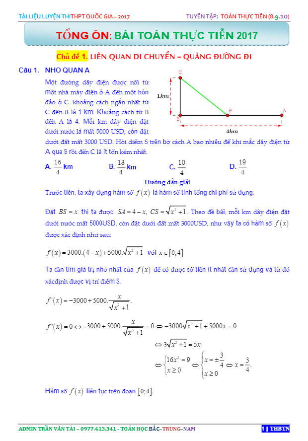 Tuyển tập và giải chi tiết các bài toán thực tiễn trong đề thi thử Trần Văn Tài