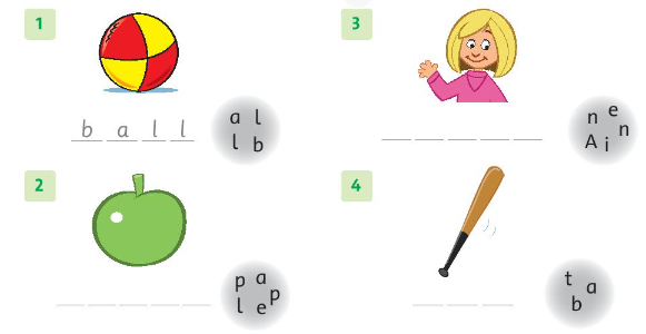 (Nhìn vào bức tranh và các chữ cái. Viết và nói từ đó.)